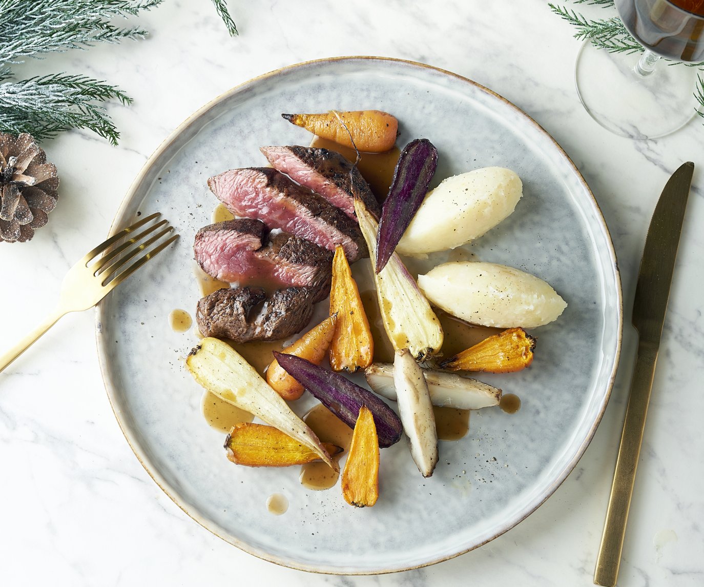 Hertenkalffilet | cognacsaus | gratin dauphinois | wintergroenten